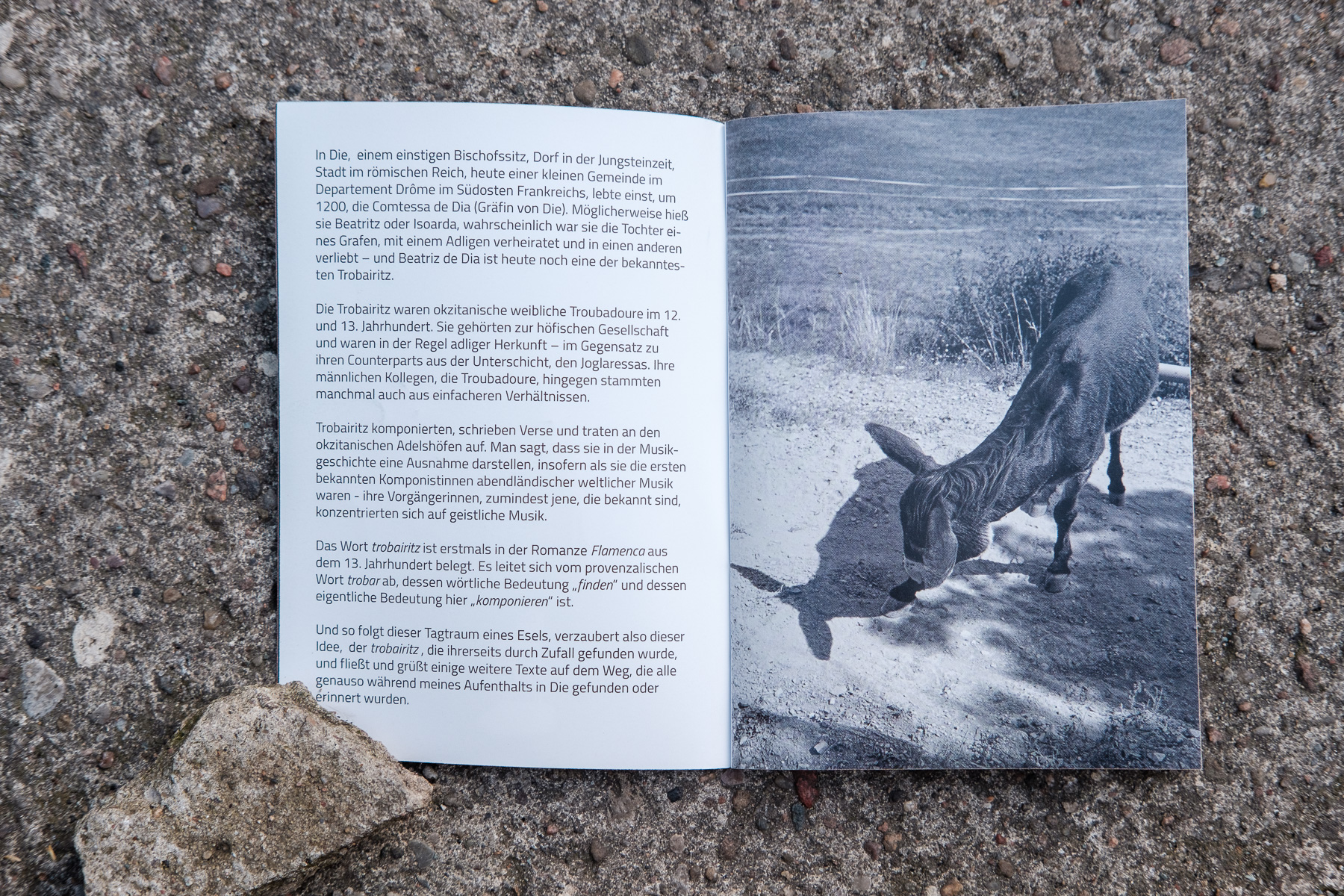 And so the donkey‘s day dream follows and flows from this idea that itself was found by serendipity, greeting some more texts on the way, all of which were found – or remembered during my stay in Die.