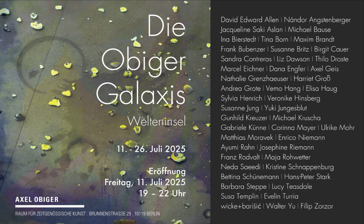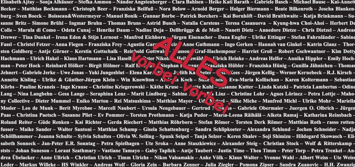 David Edward Allen, Nándor Angstenberger, Jacqueline Saki Aslan, Michael Bause, Ina Bierstedt, Tina Born, Maxim Brandt, Susanne Britz, Frank Bubenzer, Birgit Cauer, Sandra Contreras, Liz Dawson, Thilo Droste, Marcel Eichner, Dana Engfer, Axel Geis, Nathalie Grenzhaeuser, Harriet Groß, Andrea Grote, Vemo Hang, Elisa Haug, Sylvia Henrich, Veronike Hinsberg, Susanne Jung, Yuki Jungesblut, Gunhild Kreuzer, Michael Kruscha, Gabriele Künne, Corinna Mayer, Ulrike Mohr, Matthias Moravek, Enrico Niemann, Ayumi Rahn, Josephine Riemann, Franz Rodvalt, Maja Rohwetter, Neda Saeedi, Kristine Schnappenburg, Bettina Schünemann, Hans-Peter Stark, Barbara Steppe, Lucy Teasdale, Susa Templin, Evelin Turria, wicke+barišić, Walter Yu, Filip Zorzor