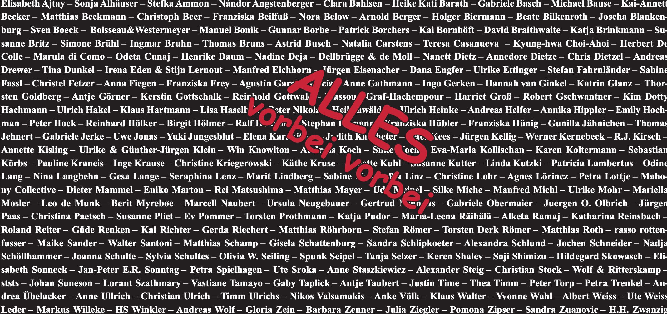 David Edward Allen, Nándor Angstenberger, Jacqueline Saki Aslan, Michael Bause, Ina Bierstedt, Tina Born, Maxim Brandt, Susanne Britz, Frank Bubenzer, Birgit Cauer, Sandra Contreras, Liz Dawson, Thilo Droste, Marcel Eichner, Dana Engfer, Axel Geis, Nathalie Grenzhaeuser, Harriet Groß, Andrea Grote, Vemo Hang, Elisa Haug, Sylvia Henrich, Veronike Hinsberg, Susanne Jung, Yuki Jungesblut, Gunhild Kreuzer, Michael Kruscha, Gabriele Künne, Corinna Mayer, Ulrike Mohr, Matthias Moravek, Enrico Niemann, Ayumi Rahn, Josephine Riemann, Franz Rodvalt, Maja Rohwetter, Neda Saeedi, Kristine Schnappenburg, Bettina Schünemann, Hans-Peter Stark, Barbara Steppe, Lucy Teasdale, Susa Templin, Evelin Turria, wicke+barišić, Walter Yu, Filip Zorzor